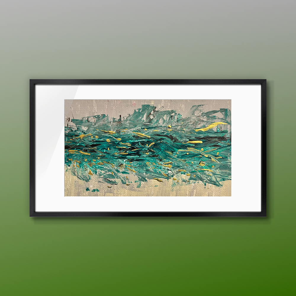 光が踊るように表現されたこの作品は、朝の光が水面に反射する様子を思い起こさせます。鮮やかな色彩と流れるようなラインが、心の奥に眠る感情や思い出を呼び覚ますことでしょう。見るたびに、その中で息づく自然の美しさと、日常の小さな幸せを再発見する力を与えてくれます。特別な空間を演出し、あなたの感受性をより豊かにする一助となることでしょう。日常の中に、新たなインスピレーションを取り入れ、心豊かなひとときをお楽しみください。