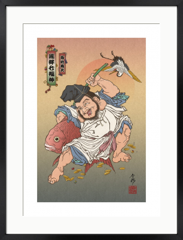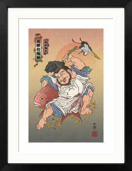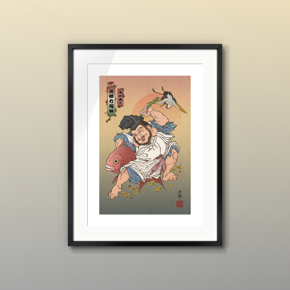 本作は、七福神という伝統的な主題を軸に、現代の感覚で構成された一図です。日常の空間に静かに寄り添い、福の巡りを感じさせる一枚となっています。