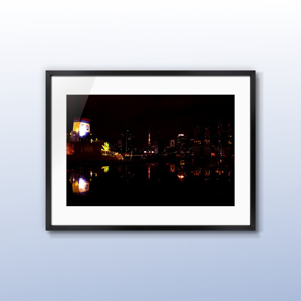 東京の夜を歩いていると、ふとした瞬間に都市の鼓動が静かに浮かび上がることがあります。本作では、東京タワーを中心に広がる光のレイヤーを通して、夜の街が持つ独特の温度と気配を捉えました。夜に映る灯りと、奥にそびえるビル群の光が呼応し、まるで都市がゆっくりと呼吸しているように感じられます。水面に揺れる反射は、時間の流れをやわらかく映し出し、賑わいの裏側に潜む静けさをそっと示してくれます。東京は常に変化し続ける場所ですが、その中には確かに“立ち止まるための瞬間”が存在しています。目に見える光だけでなく、その奥にある余韻や気配まで写し取ることを意識しながら、この作品を制作しました。夜の都市が持つ美しさと、そこに宿る静寂の断片を感じていただけたら嬉しいです。