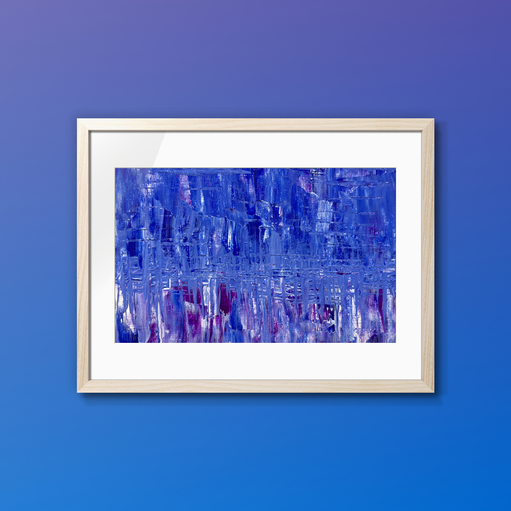 深いサファイアの夜が、優しいドレープのように心を覆います。 ブルーとパープルの層が、女性らしい静かな憂いをそっと紡ぎます。