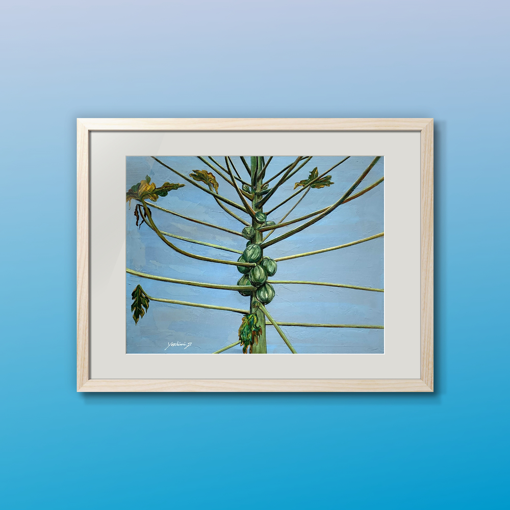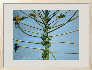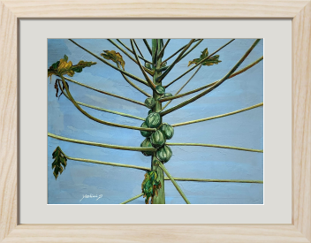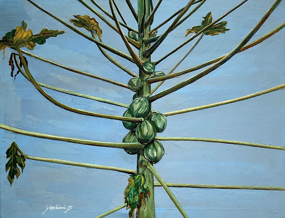 曇り空の無表情な雰囲気が、気持ちを落ち着ける時もある。静かにパパイヤは枝を広げる。