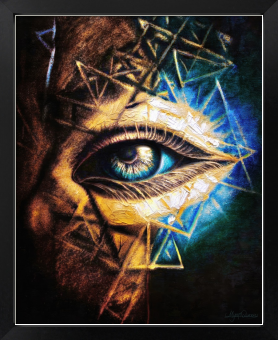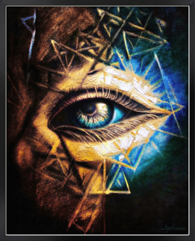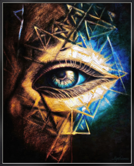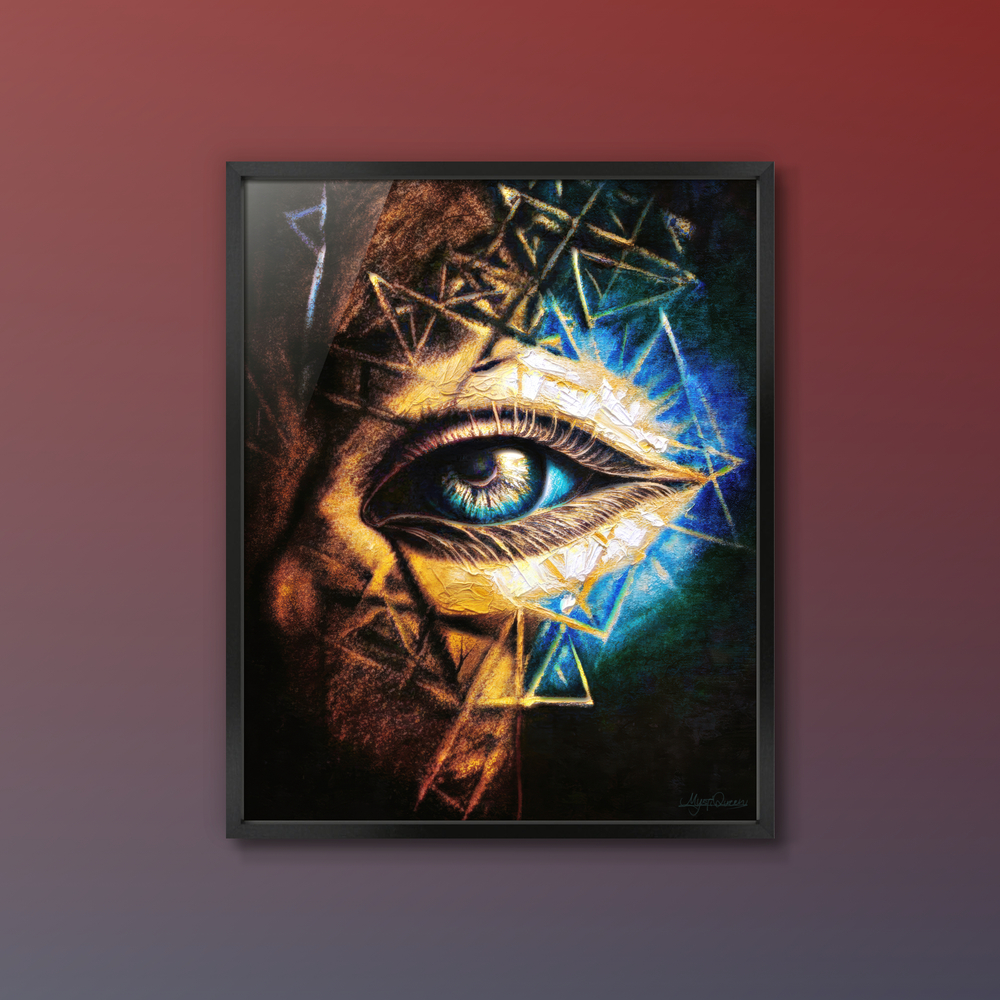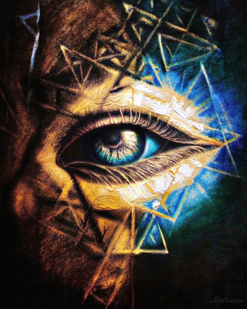 神秘・テクノロジー・神話的象徴が一点に収束する視覚的刻印 それは悟りの完成ではなく、始動の合図として刻まれた視線