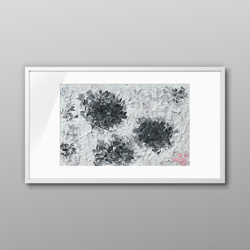 白地に黒のスポットが特徴的な愛らしい猫のデザインです。この独特な美しさは、見る人の目を引く魅力を放ち、空間に温かみをプラスします。飾るだけで日々の癒しを与えてくれるだけでなく、愛らしい猫を身近に感じることができます。