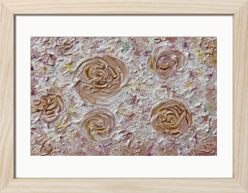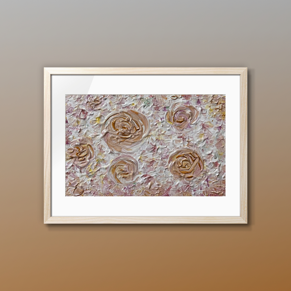 優雅なゴールドを基調にしたバラのデザインが、見る人を魅了する美しさを放っています。このアート作品は、柔らかなピンクのトーンが織り成すハーモニーと、ゴールドの輝きが、空間に洗練された印象を与え、心を豊かにします。日々の生活の中で、特別なひとときを与えてくれることでしょう。