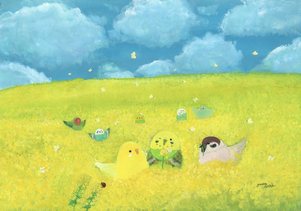 Title:【菜の花インコたち】