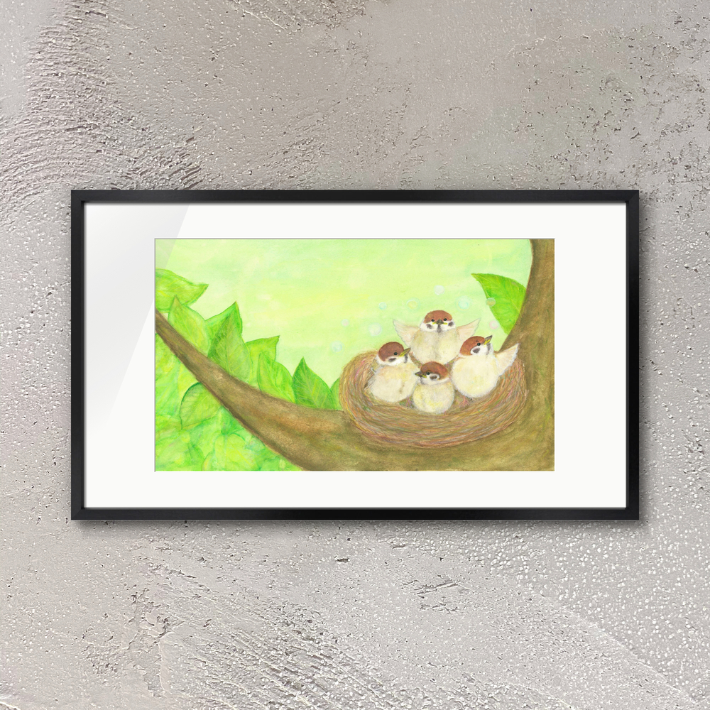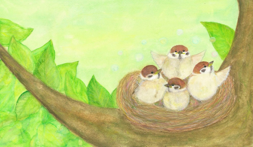 絵本『ちゅんすけ~きみのにがてなことってなーに?~』のポストカードです。 自由におはなしを想像していただけましたら 幸いです。