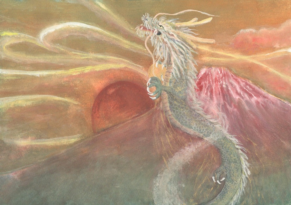 Title:赤富士と昇り龍