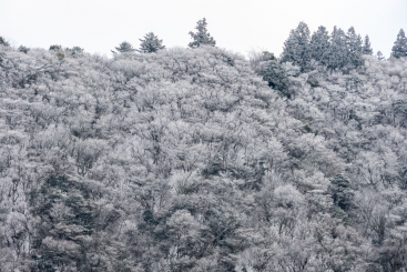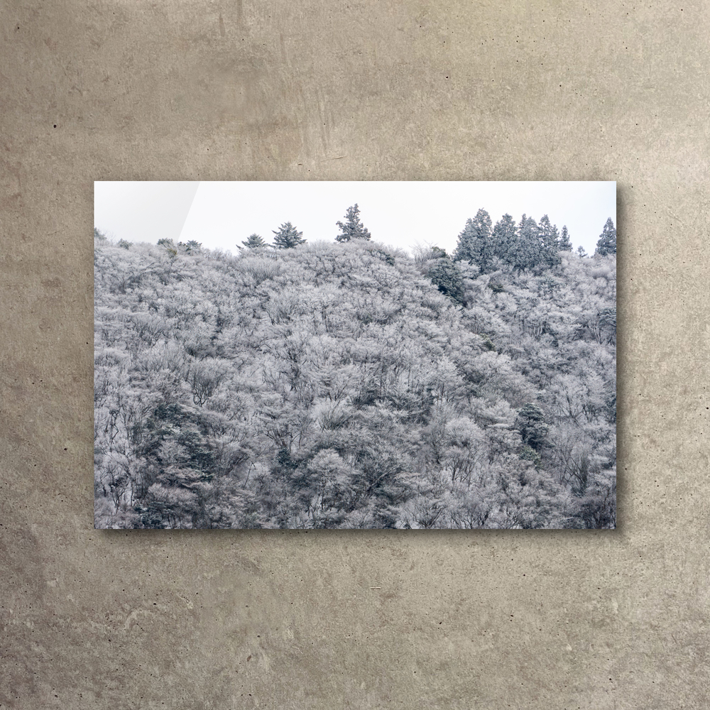 雪は音もなく枝に降り積もり、花のような姿をつくる それは、すぐに消えてしまう冬の錯覚 それでも森は、確かに春の夢を見ている