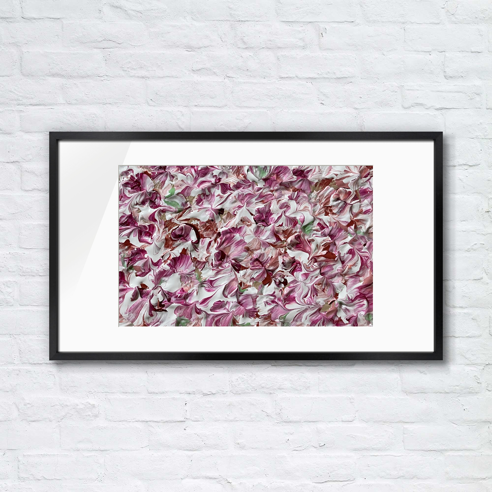 柔らかなモーヴのベールが広がる幻想的な作品です。華やかさと優雅さを兼ね備えた色合いが、心に深い感動をもたらしてくれます。少しずつ浸透してくる色が、心の奥深くに広がる波のように、静かに癒しの時間を演出します。まるで夢の中で過ごすような、心が澄みきった空間をお楽しみください。