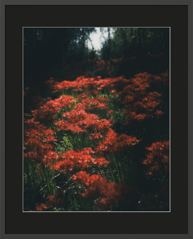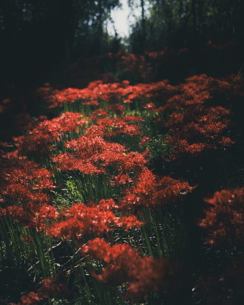 差し込む光に照らされた鮮やかな赤色に季節の彩りを感じます。とても美しいです。