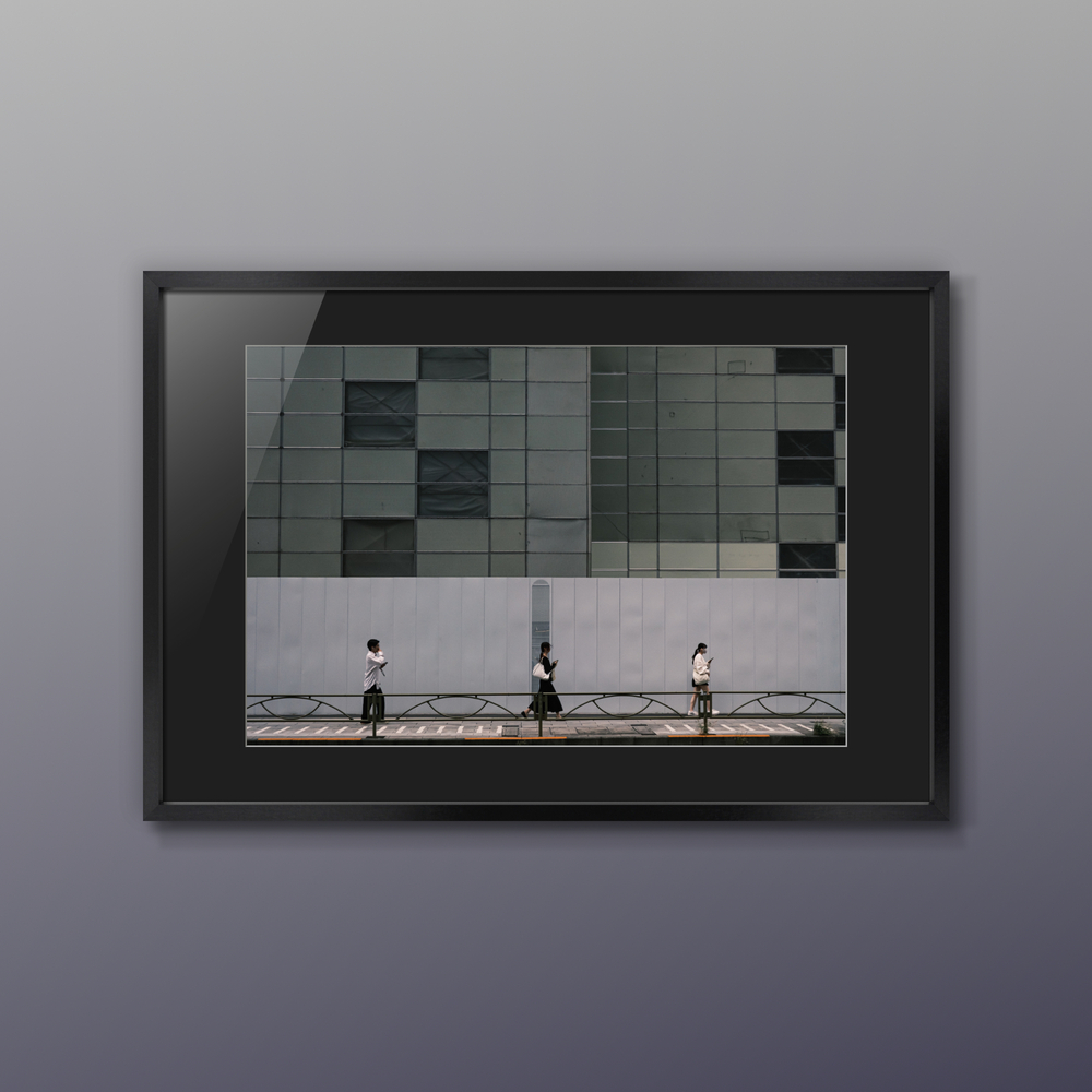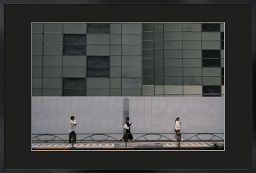 街の中にはいくつもの物語があり、自分の視線次第でその瞬間、瞬間を切り出すことが出来ます。なぜか不思議と同じ間隔を保って歩く人達。工事現場の白い壁がより印象的に見せてくれます。