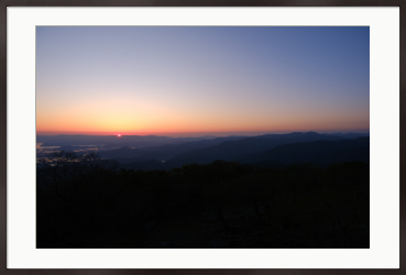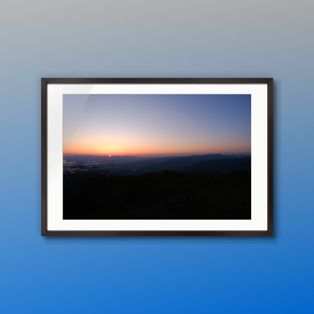 標高1,200mにある駐車場からの眺望です。 快晴の天候の中夕暮れを迎え、完璧な眺望を見ることができました。 この作品は、撮影の方法により鮮明・精細ではない印象になりますのであらかじめご了承ください。