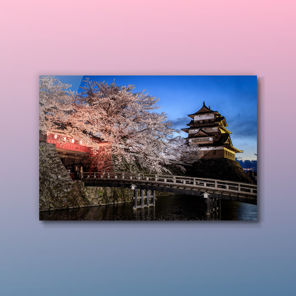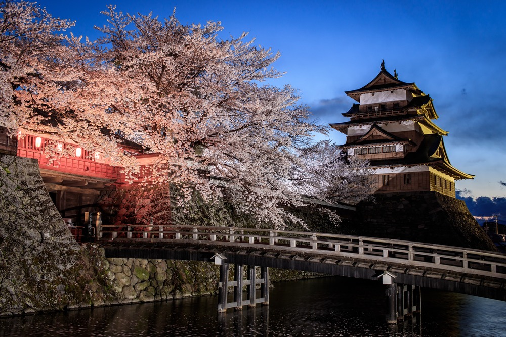 2021.04.08 高島城で撮影。この日は一日曇り空でしたが撮影する時に晴れて見事な写真となりました。昔は諏訪湖に面しており、浮いて見えたそうです。現在のお城は昭和四十五(1970)年に復興されました。 石田健悟 写真展「諏訪の風景」で展示。