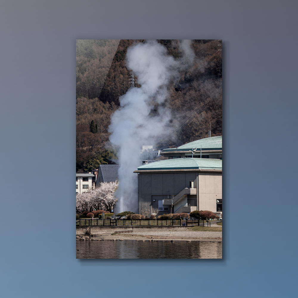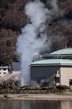 2021.04.09 諏訪湖間欠泉センターの写真。コンプレッサーを使い高さ5mまで噴出していた間欠泉。現在は湧き上がる温泉は見れますが、残念ながら噴出は見られません。忘れられない諏訪の風景です。