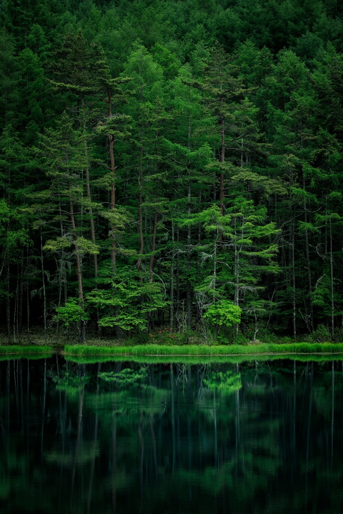2025.06.08 御射鹿池の写真。とある絵画で有名な風景ですね。元々は農業用のため池で、1933年に作られたそうです。ちなみに望遠レンズで撮影しており、実際目にするとイメージとは違うかもしれません。 石田健悟 写真展「諏訪の風景」で展示。