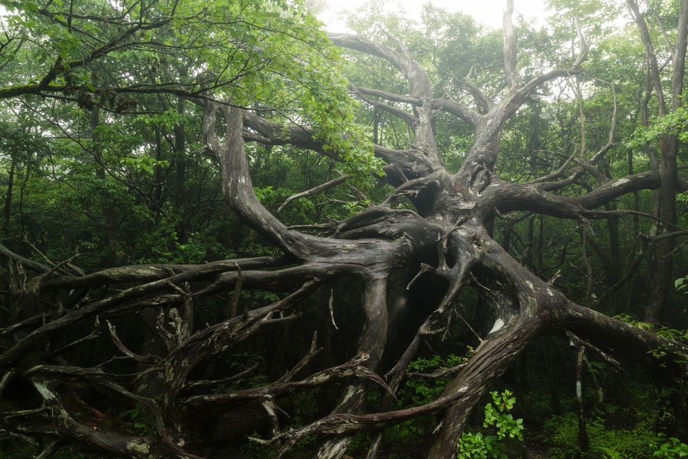 高知県高知市 工石山(天然ヒノキ風倒根) 写真集「工石山の森」掲載 https://www.takuya-okamoto.com/books/kuishiyama/