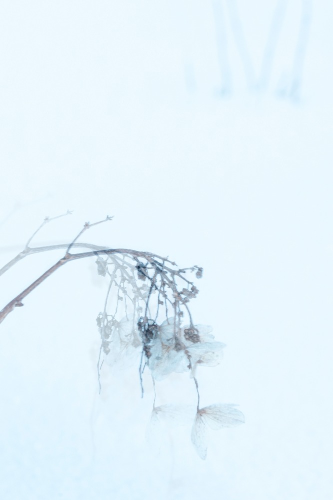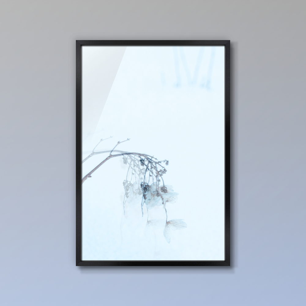 冬の霧ヶ峰。色彩が消えた真っ白な世界で、風に身を任せる一枝。 凍てつく寒さの中で揺れ動くその姿は、儚くも、確かな命の強さを感じさせます。 曖昧な背景と繊細なディテールの対比が、見る人の心に静かな余韻を残す一枚です。 静寂を飾りたい場所、心を落ち着かせたい空間に寄り添います。