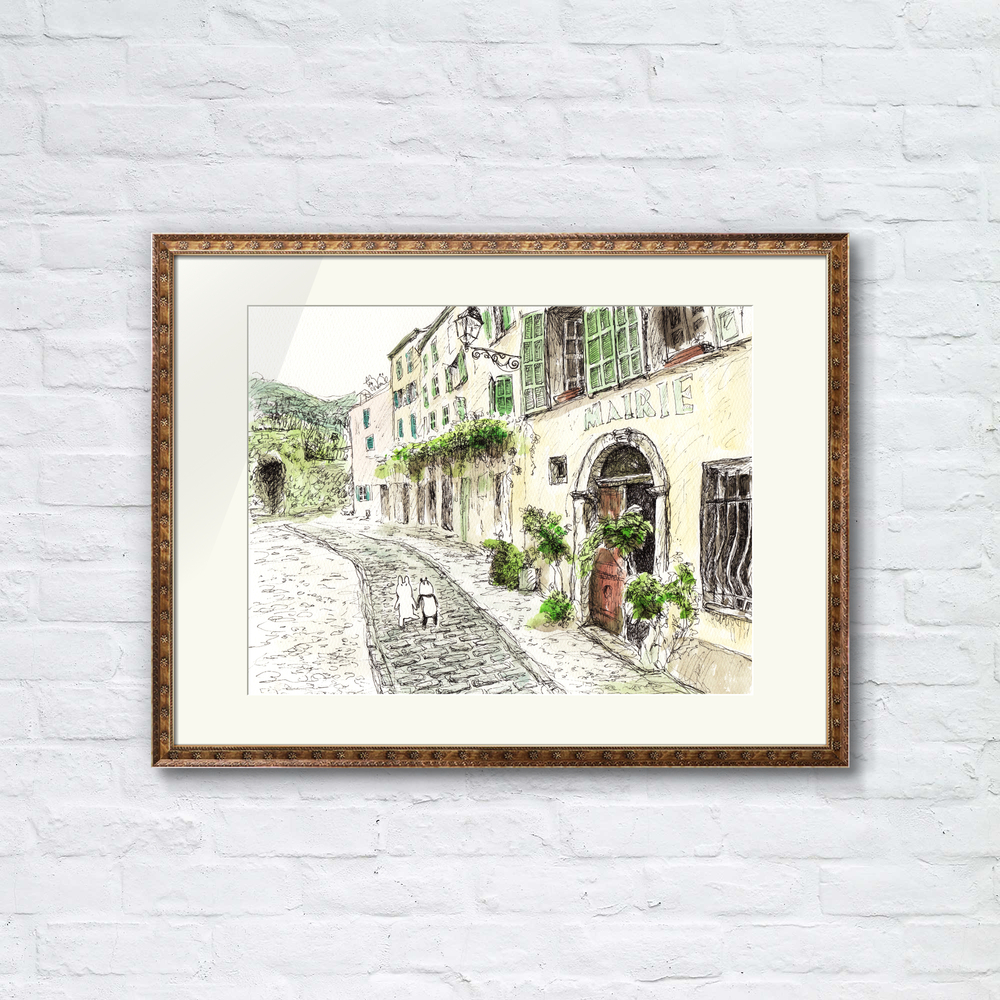 南仏プロヴァンスの小さな村「SEILLANS(セイヤン)」をイメージして描いた作品です。 やわらかな光に包まれた石畳の道を、うさぱんたちがのんびりお散歩中。 まだ訪れたことのない場所でも、心の中では何度も旅をしているような気持ちで描きました。 窓辺のグリーンや古い壁の風合いなど、プロヴァンスらしい静かな時間を感じていただけたら嬉しいです。 お部屋にそっと、南仏の空気を。