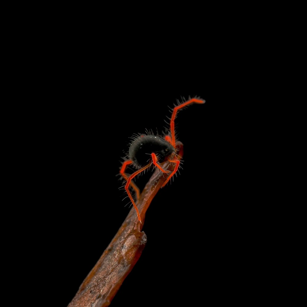 ケナガミドリダニ属の仲間で種は不明。吸血しないダニで、主に苔類などの植物を食べて生活しています。