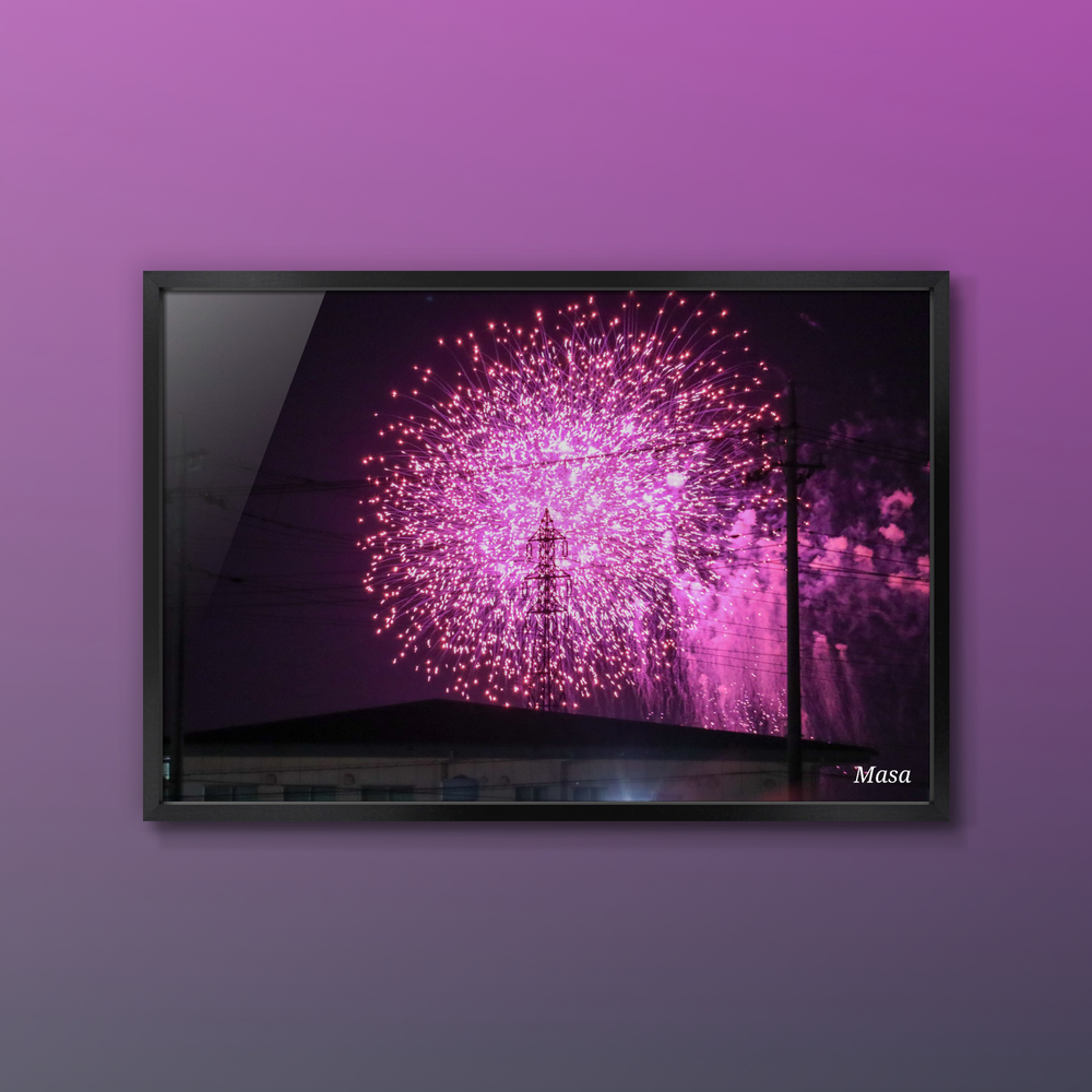 無機質な鉄塔の輪郭と、 情熱的に弾ける光の対比。 力強さと儚さが交差する、 都市の夜を象徴する瞬間を切り取りました。 モダンなインテリアや、 シックな空間に映える一枚です。