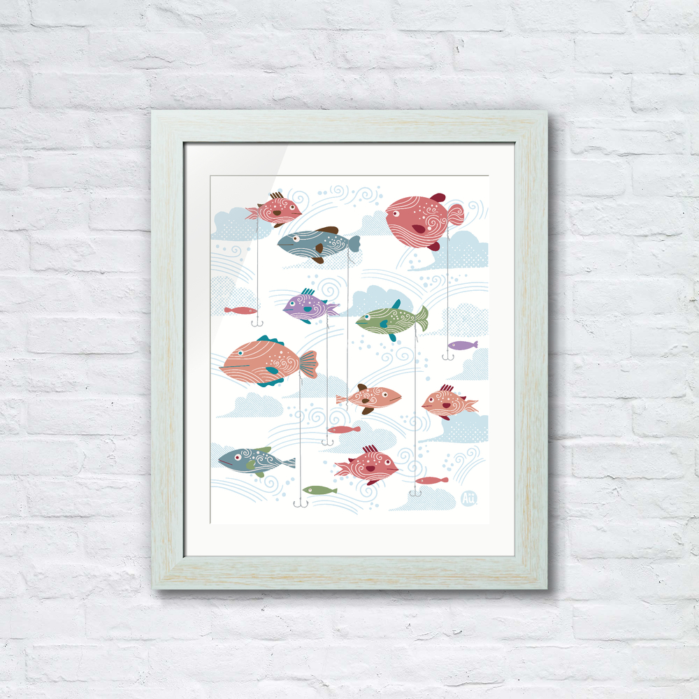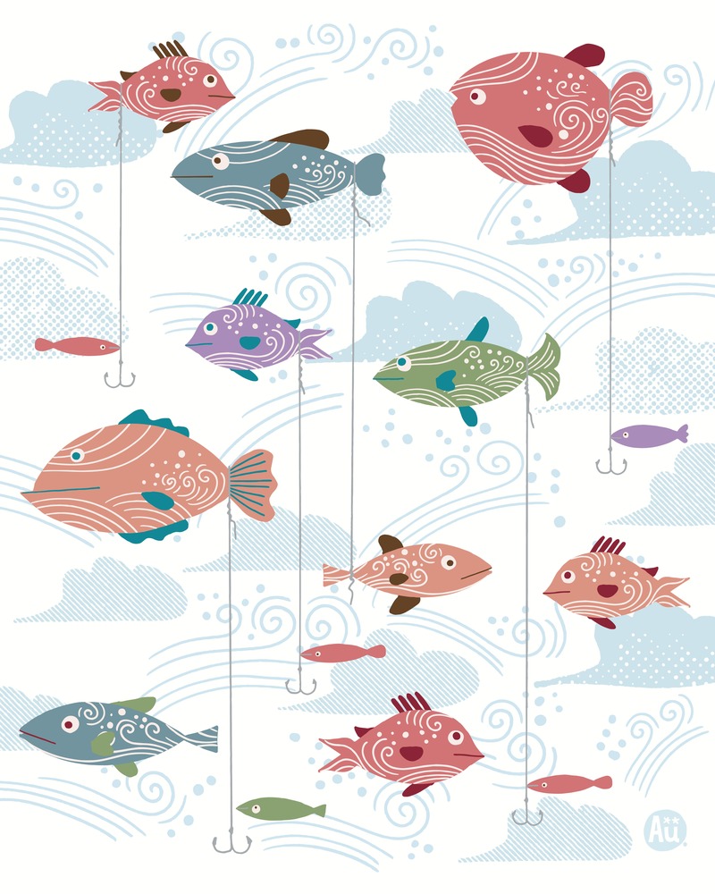 Title:Fish Fishing Fish (white)