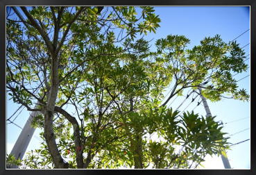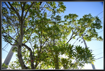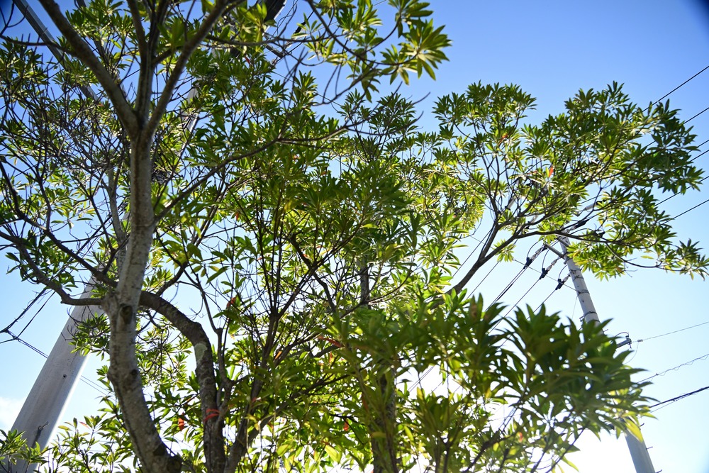 Title:朝の住宅街の街路樹(ホルトノキ)
