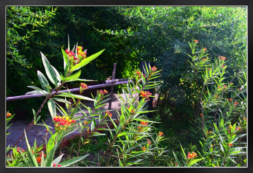 毒チョウ(カバマダラ)を育むトウワタの植わる花壇の美