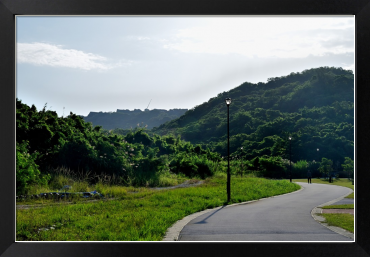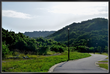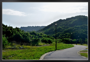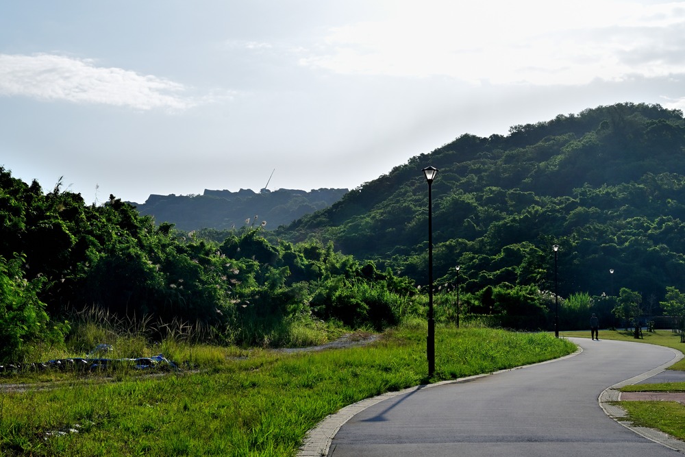 県営中城公園の園路を朝日の方角に歩けば中城城跡が見えます