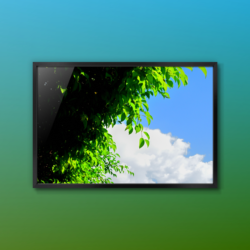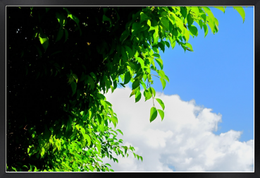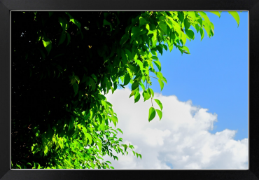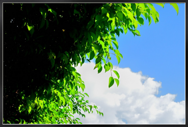 Title:晴天の歩道にせり出す緑の爽やかさ