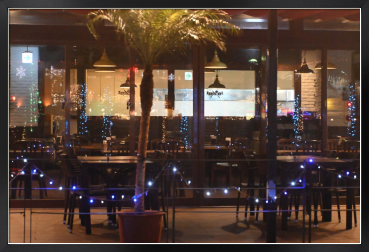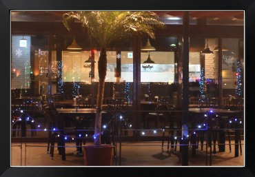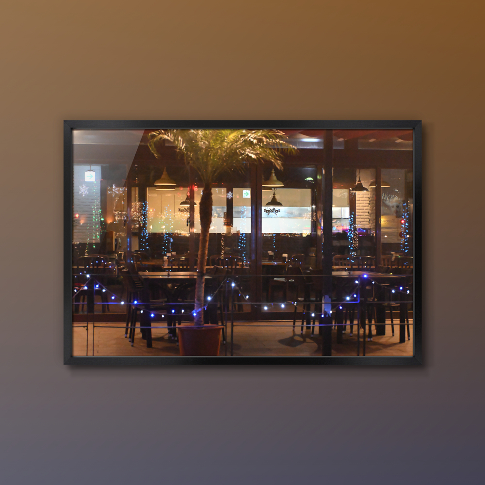 Title:クリスマスイルミネーションが映るレストランのガラス