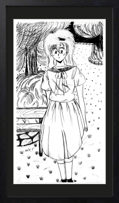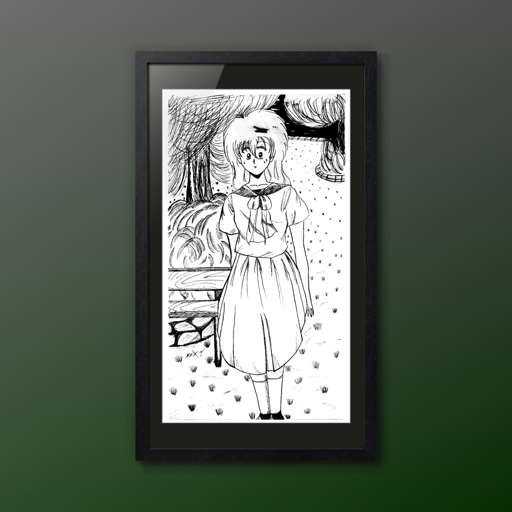 公園で見かけた女子を スケッチして描きました。 下描き 鉛筆 ペン入れ