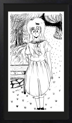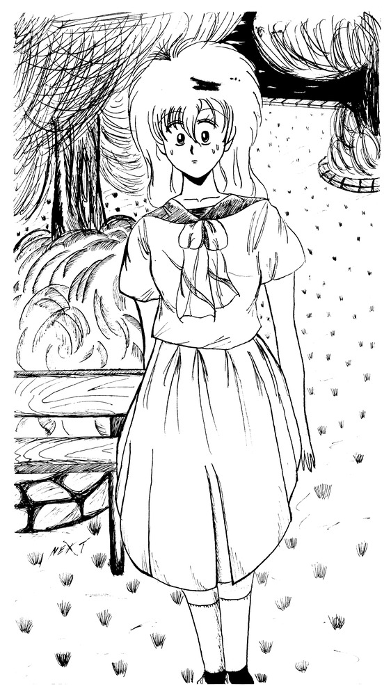 公園で見かけた女子を スケッチして描きました。 下描き 鉛筆 ペン入れ
