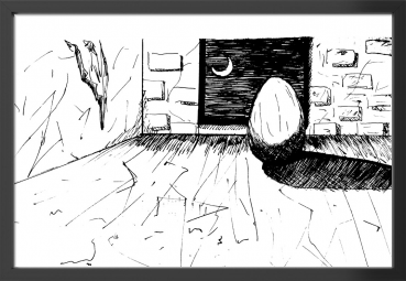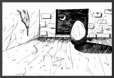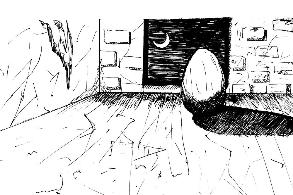 ひっそりと、月夜にたたずむ 幻の たまご 下描き 鉛筆 ペン入れ