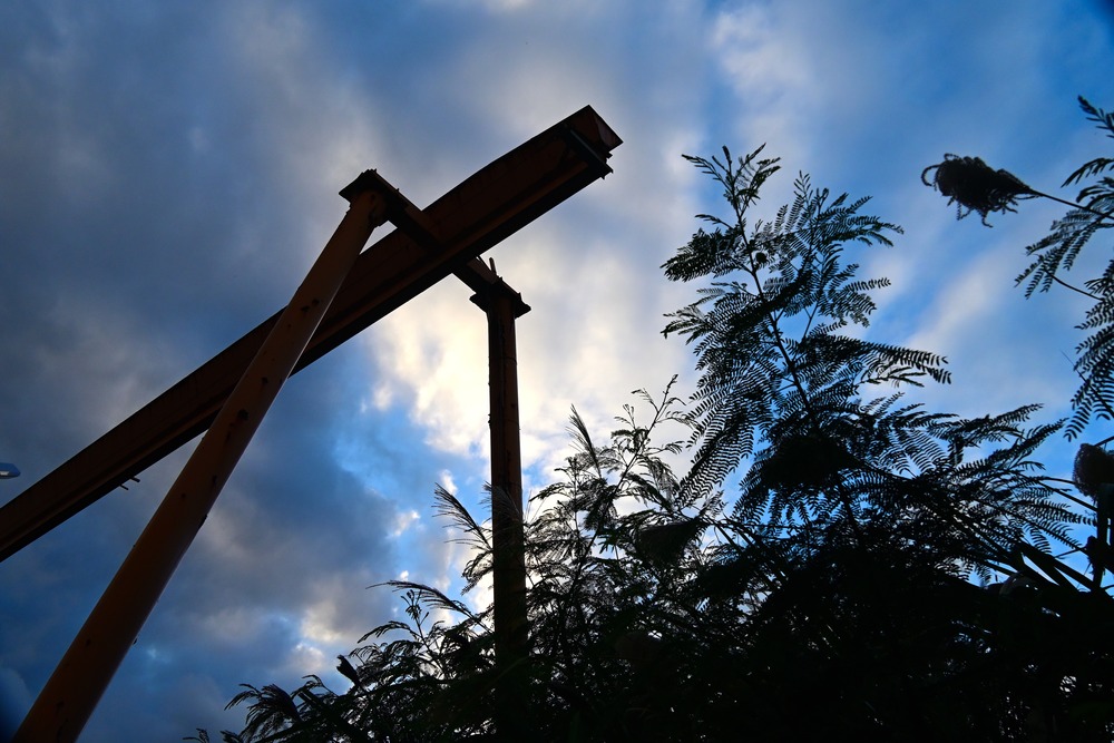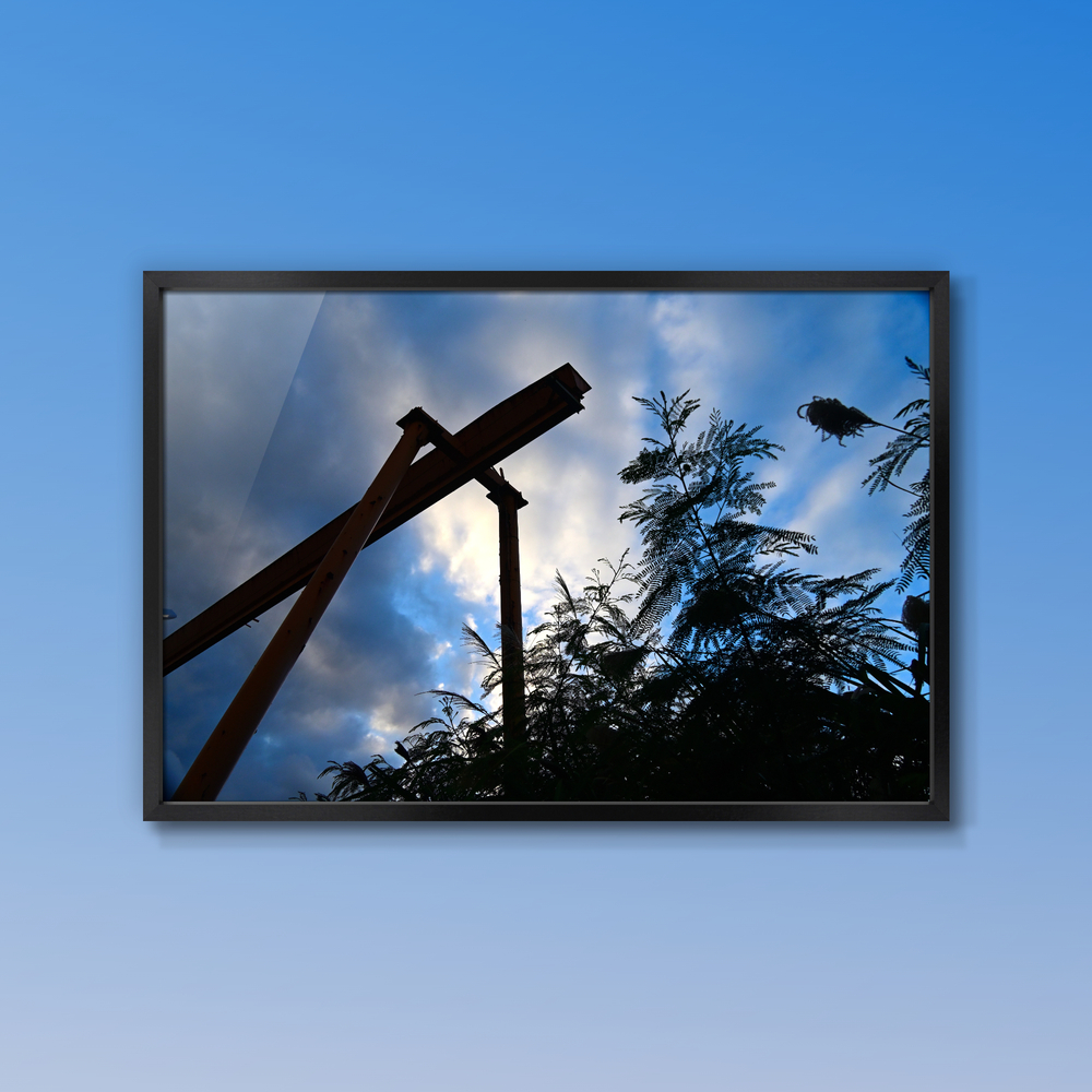 冬のスナップより、見上げるとクレーンが冬の黄昏にありました