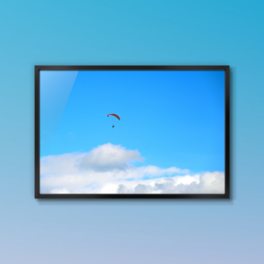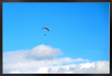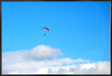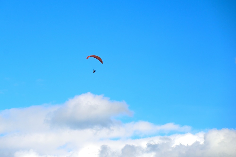 青空にゆうゆうと飛ぶパラグライダーは自由で開放的ですね