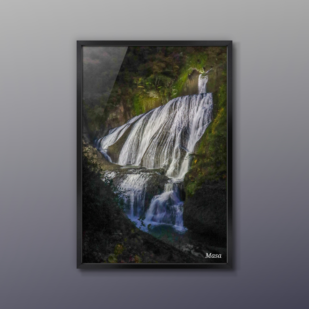 深い森の闇を背景に、 幾重にも重なって流れ落ちる白い水。 力強さと静けさが同時に宿る一瞬を切り取りました。 空間に清らかな存在感を与え、日常に静かな余白をもたらします。 リビングや書斎、玄関に。 飾るだけで、空気が整うような一枚です。 自然の美しい瞬間を、あなたの空間へ