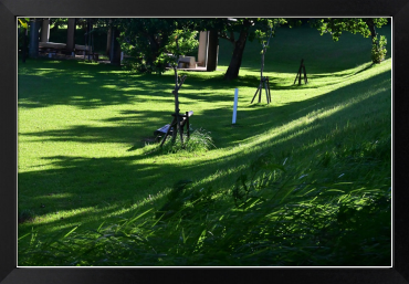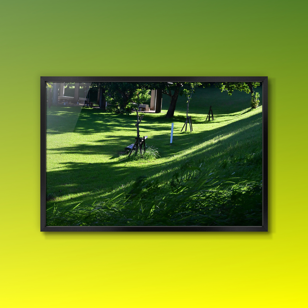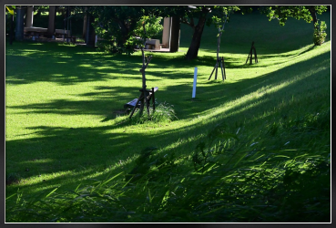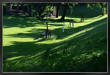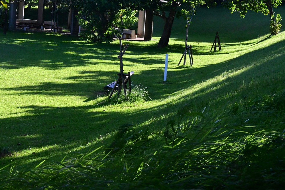 黄昏時の広場(沖縄県総合運動公園)のベンチと草むらが美でした