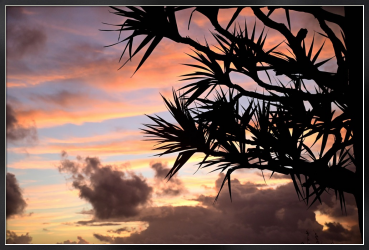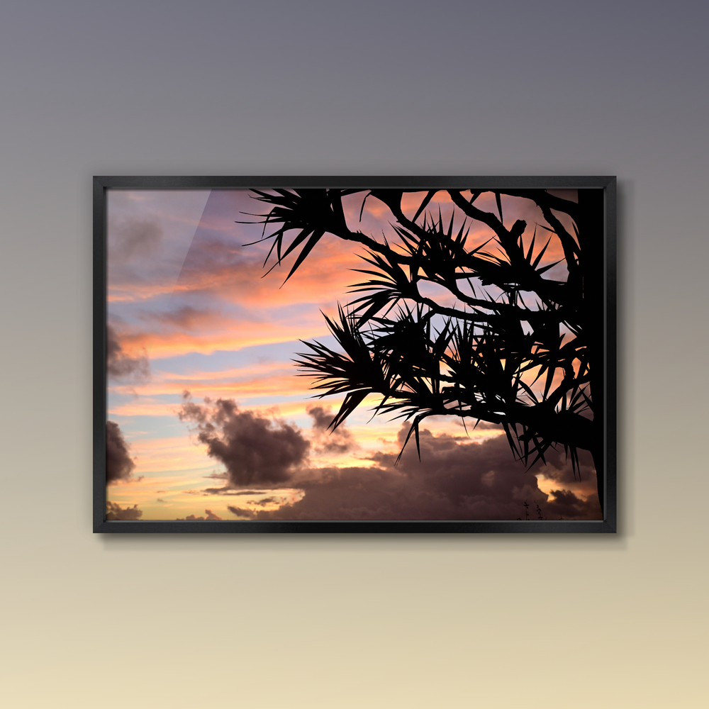 Title:朝焼け雲とタコノキ(泡瀬ベイストリートにて)