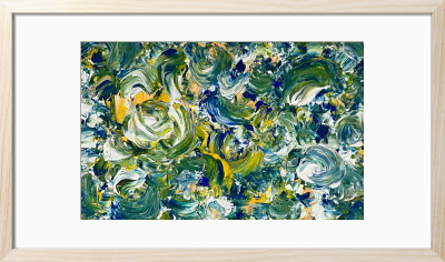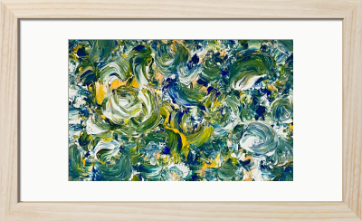 青と緑の波が優雅に重なり、金の輝きが花のように咲き乱れる作品です。心の揺らぎを優しく抱きしめ、内側から湧き上がる穏やかな喜びを静かに伝えてくれます。日常の喧騒から離れた、深い安らぎを感じる一枚です。