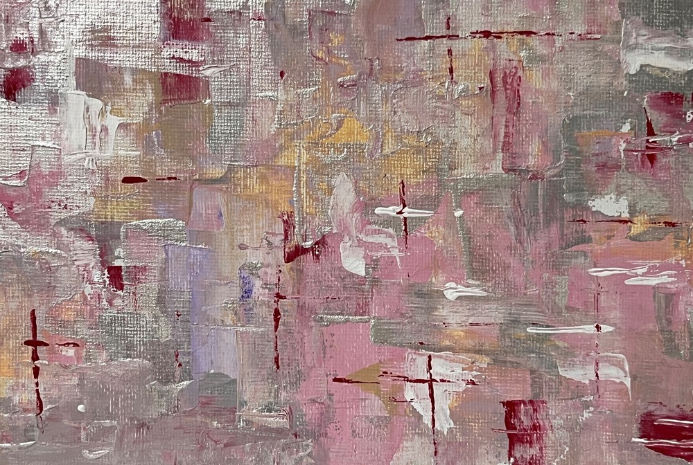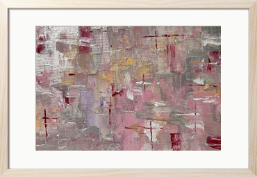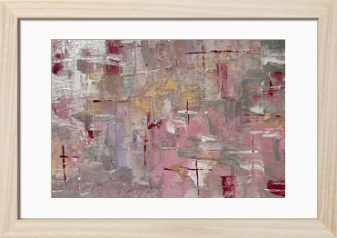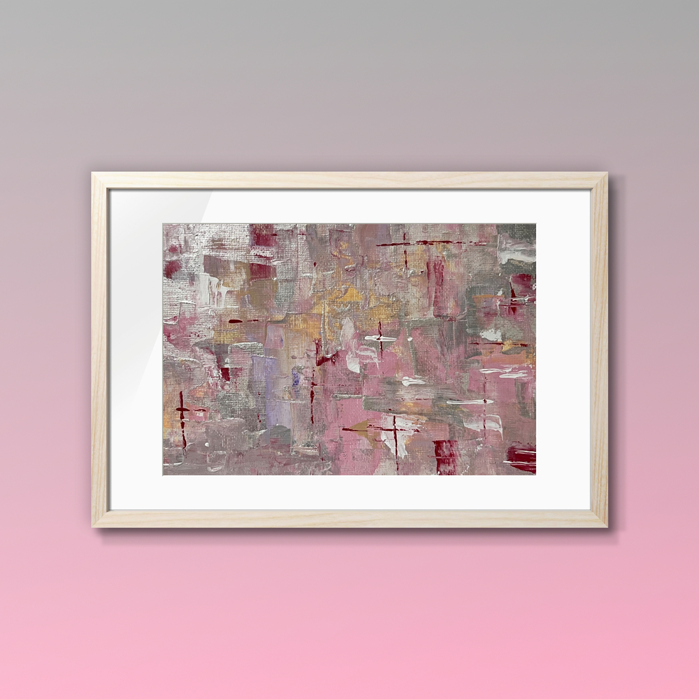 柔らかなローズ色が織りなす抽象的なハーモニーが、心に温かさを与え、空間に華やかな印象を与えます。優雅に交錯する色彩がまるで春の訪れを感じさせ、観る人を夢のような世界へと導くことでしょう。この作品は、柔らかな光と影のコントラストを生み出し、お部屋に穏やかな雰囲気を演出します。