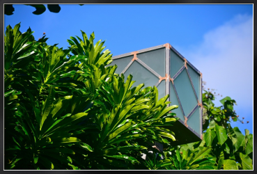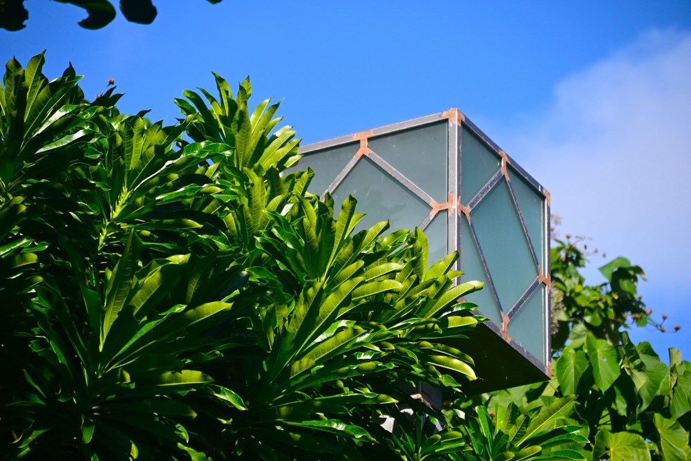 Title:レトロモダンな街灯を囲むオキナワキョウチクトウ