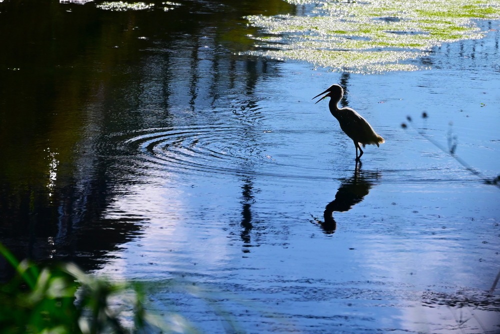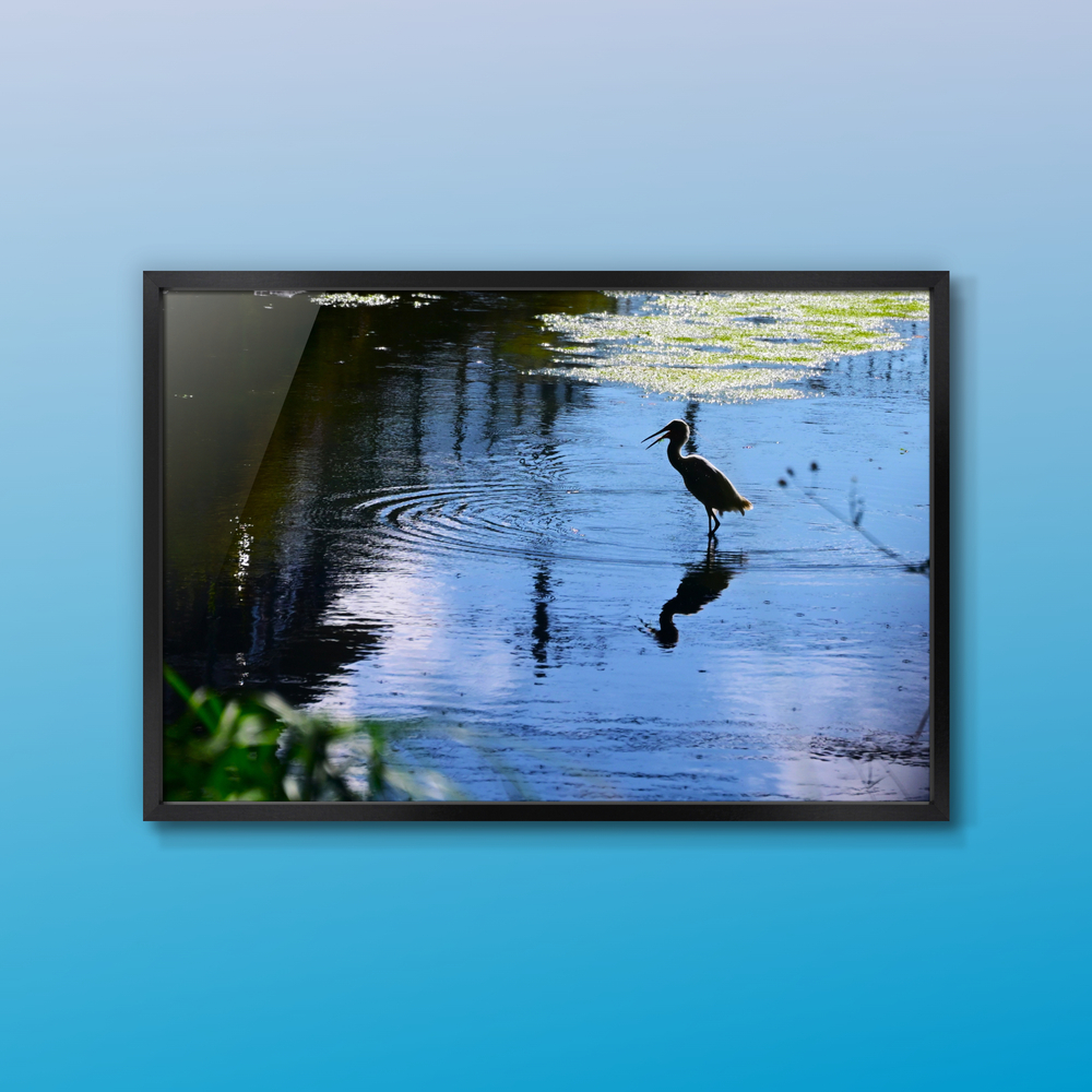 都市の雨水排水路にコサギのシルエットがありました