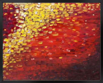 赤や黄色、黄金色の重なりと変化は、