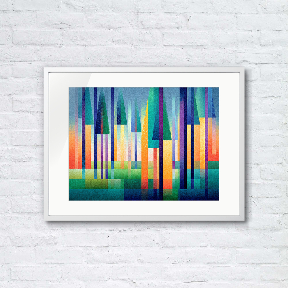 空へ伸びる木々と静かな空気感をまっすぐな線で描きました。お部屋に凛とした心地よい風を運びます。