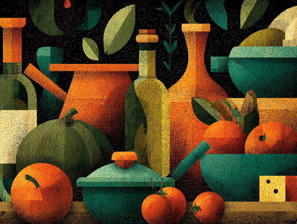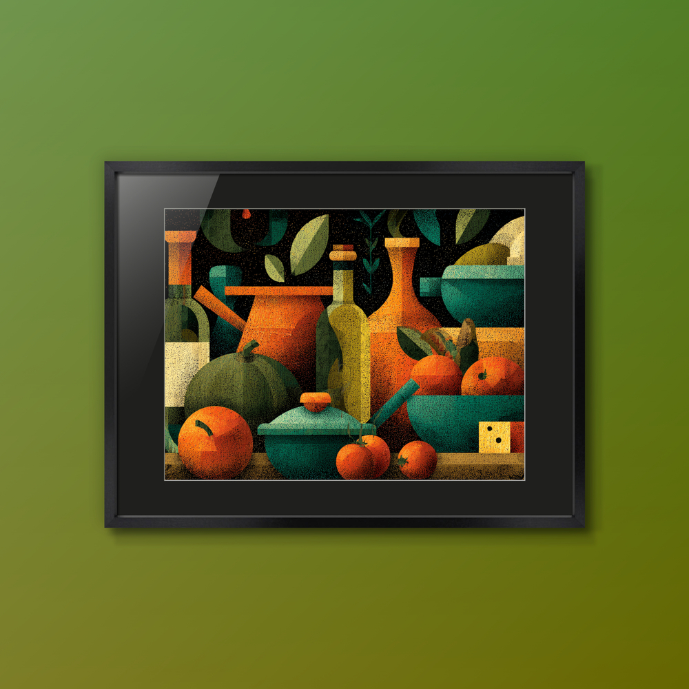 暮らしに寄り添う道具や食材を、深い色彩で描き出しました。静かな夜や穏やかな朝のひとときを彩ります。