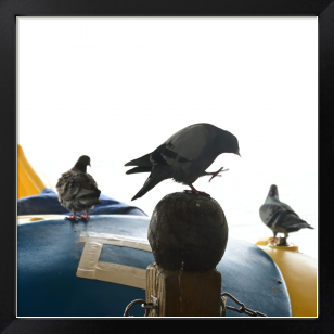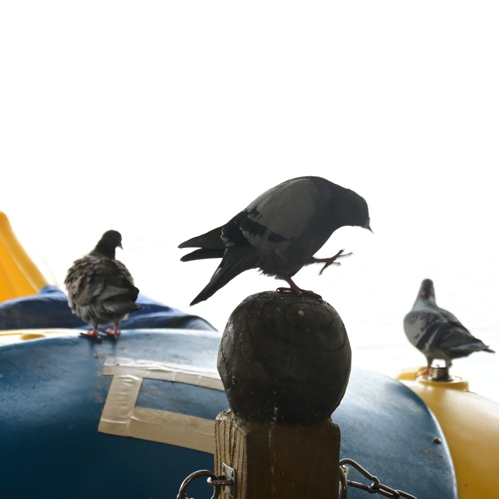 休園日のボート乗り場ではエサ待ちのハト達が待ちぼうけ