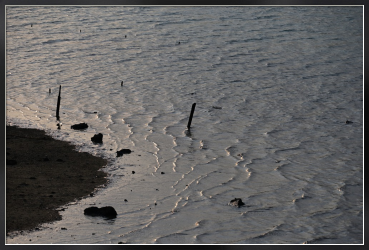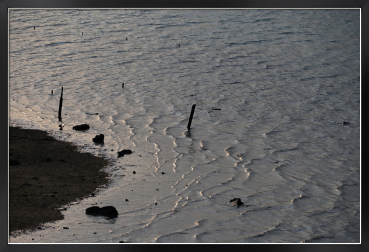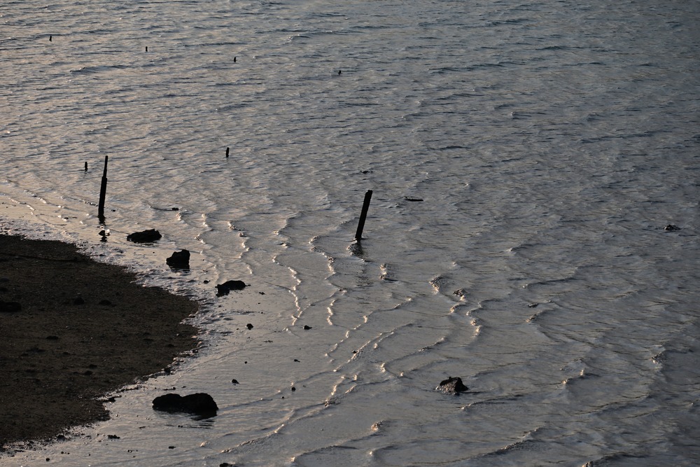 夕暮れの海面に面白い模様が出現(奥武島の夕暮れにて)