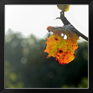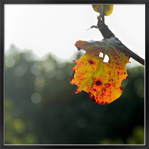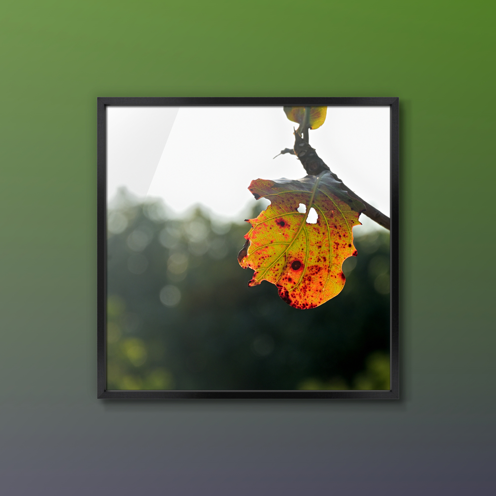 モモタマナの虫食いの紅葉が一つだけ付いた冬枯れがありました