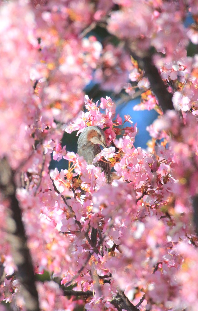 Title:河津桜とヒヨドリ