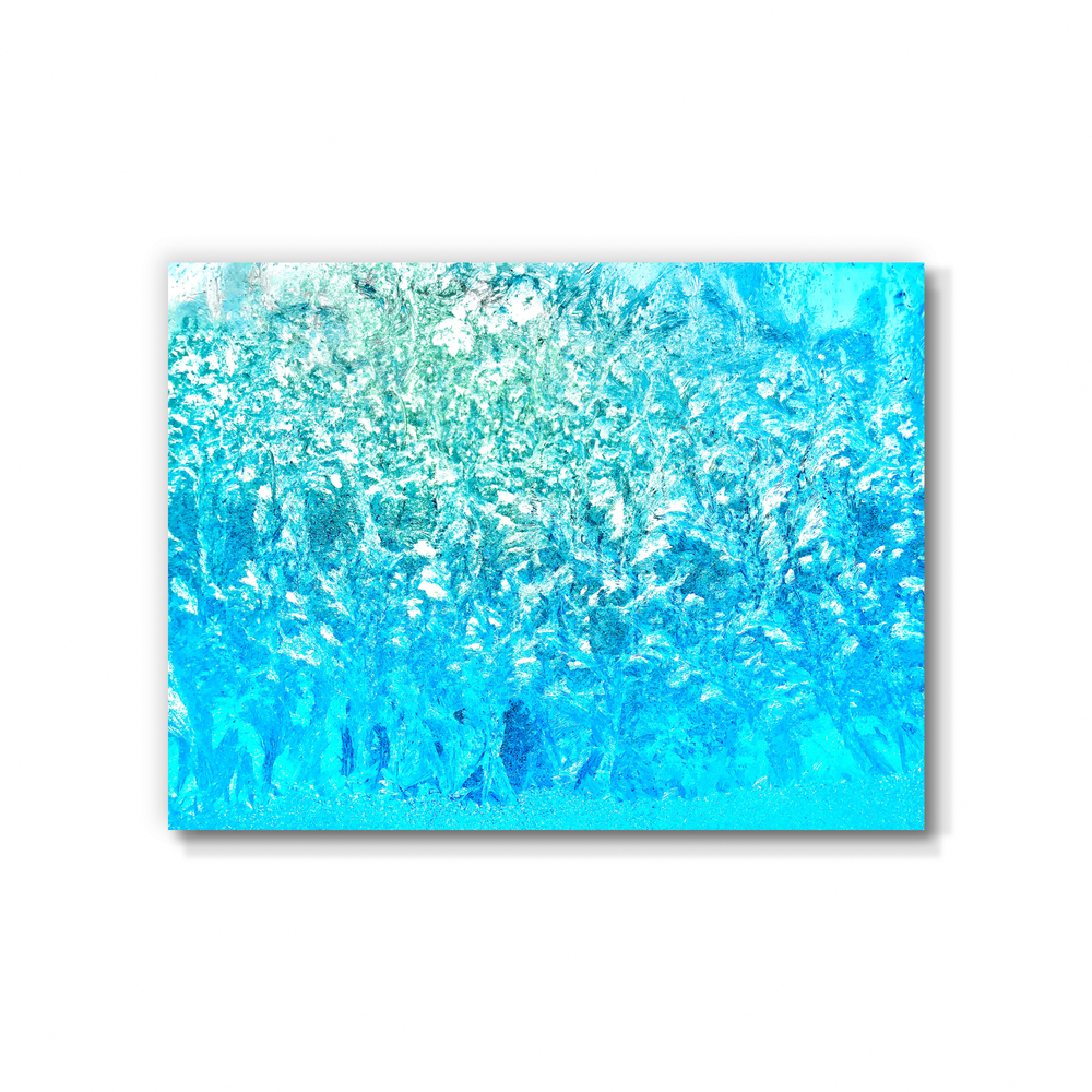 美しい氷紋に魅せられて2009年頃から写真を撮りためていた作者が、利き腕の骨折を機にアートポストカードとして販売を始めたところ、海外展示などのお誘いをいただいて大きな作品に作り上げる際に生まれたアクリル画。